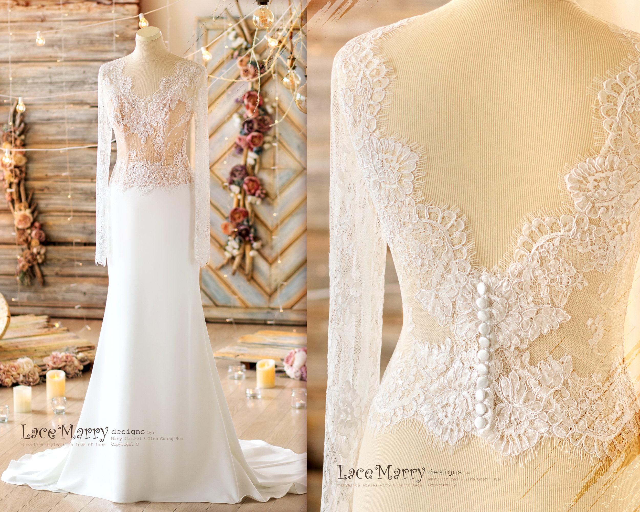 Buy Boho Wedding Dress Set With Fitted Crepe Skirt Long Lace Online In India Etsy
